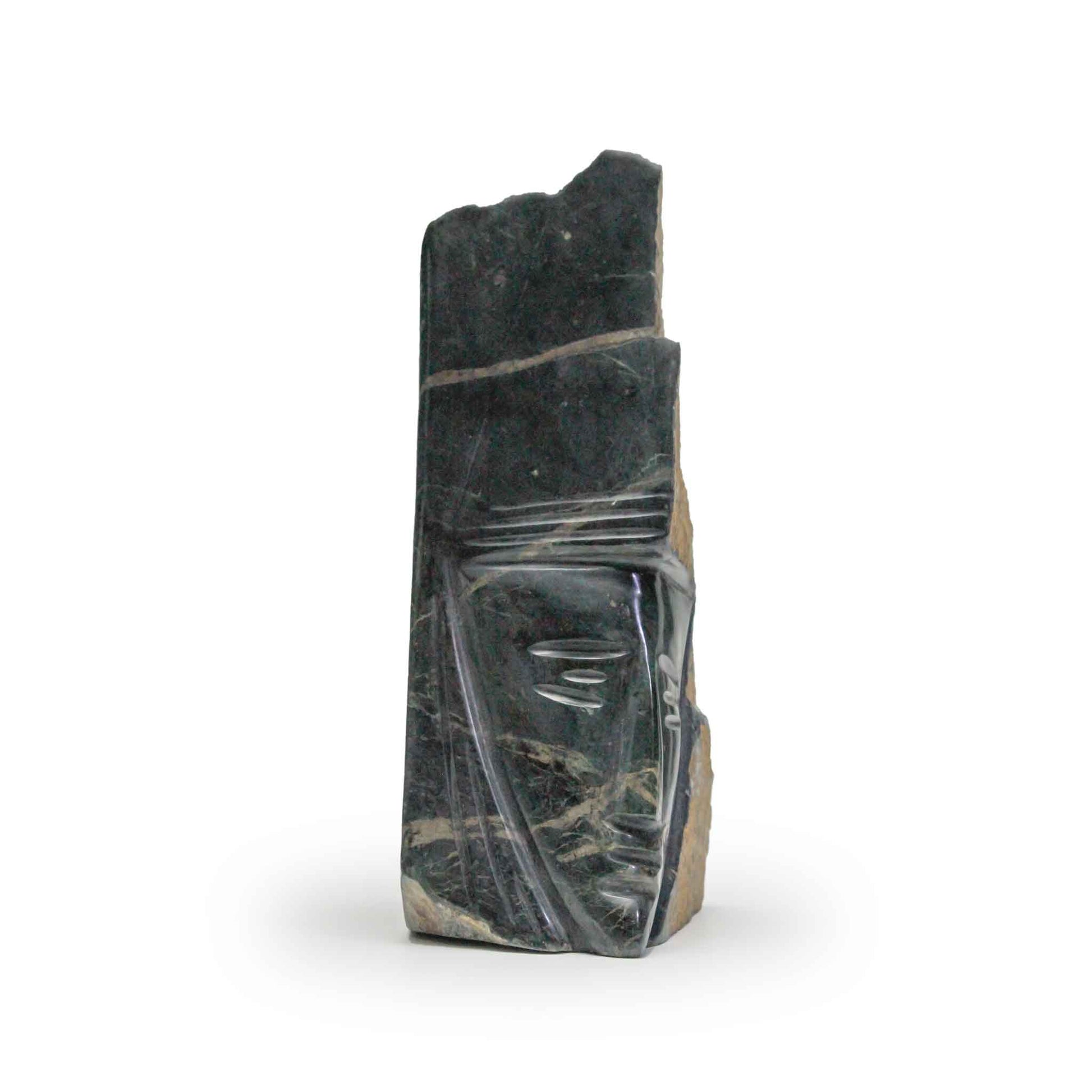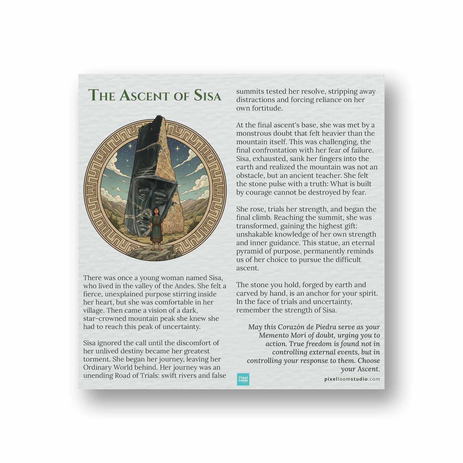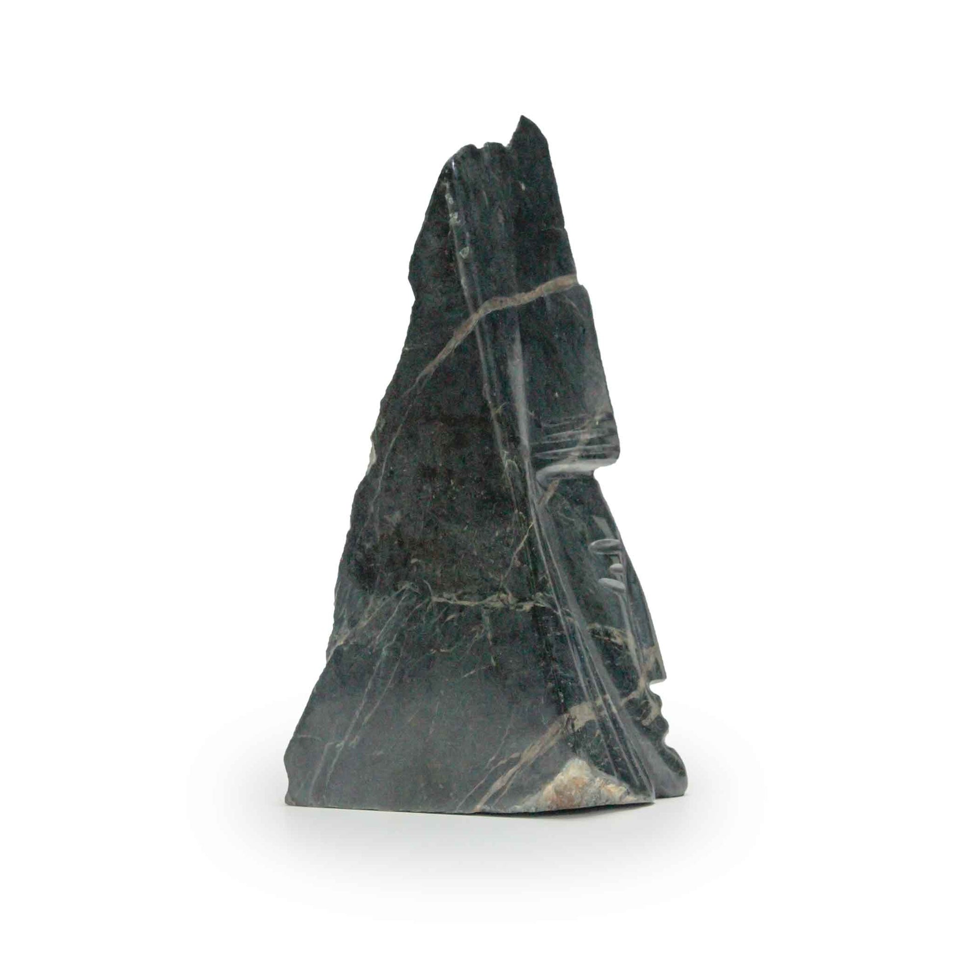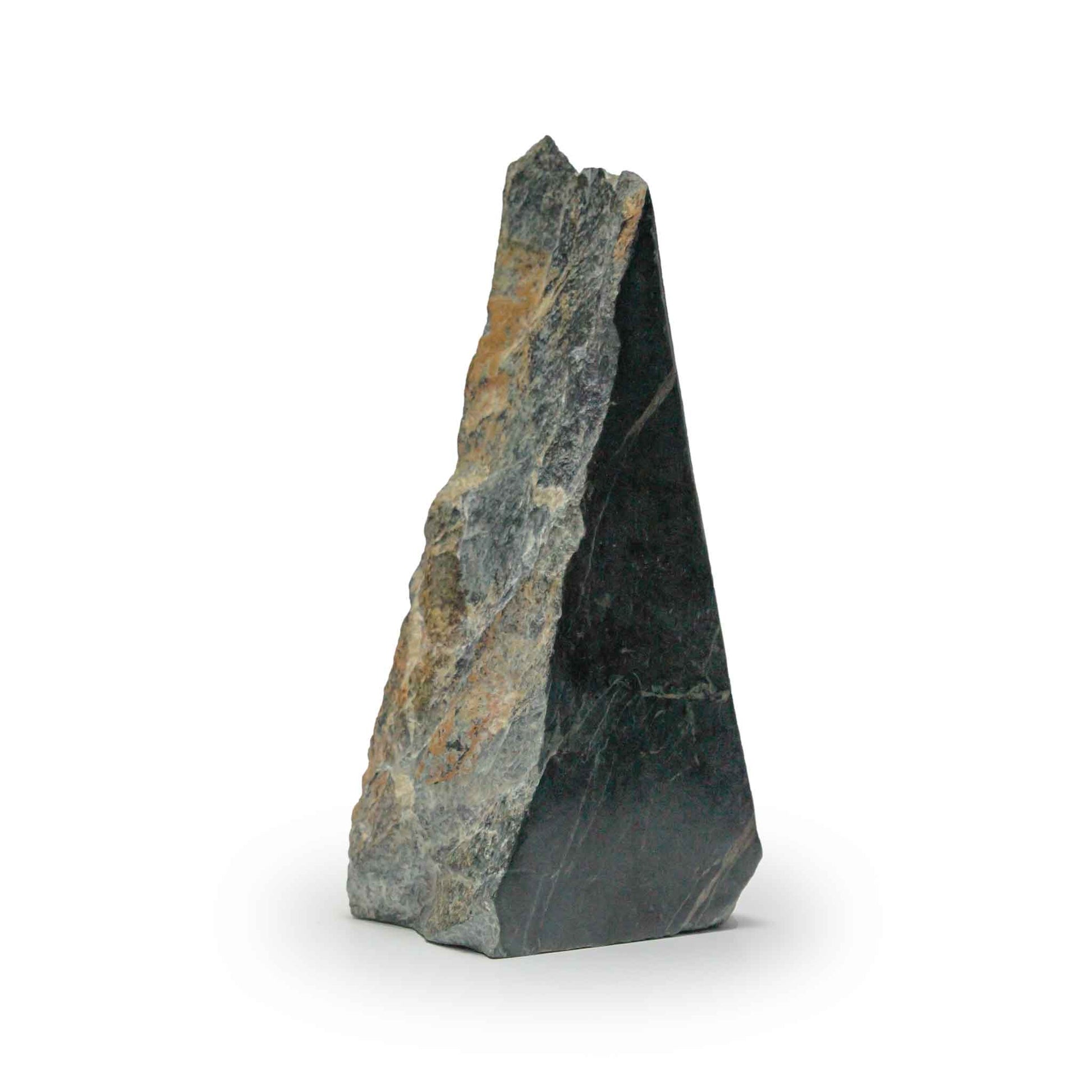 From the Corazón de Piedra Collection, this majestic sculpture features a distinct pyramidal form, symbolizing a journey or a fixed destiny. Expertly hand-carved in Ecuador, the polished, dark black-green jade face emerges from the raw, multi-hued mountain stone. The piece's powerful verticality and sharp lines make it an elegant, striking statement of Andean strength and purpose. A unique and compelling memento of your time in Ecuador.