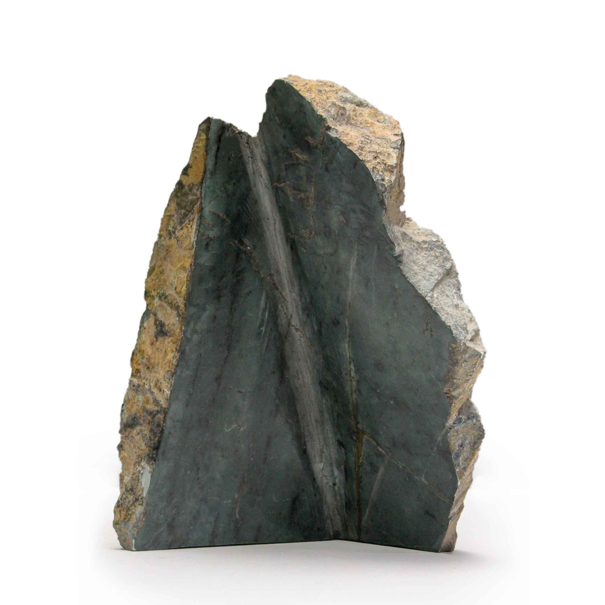 This breathtaking, one-of-a-kind sculpture captures the essence of the Andean mountains. Expertly hand-carved in Ecuador, a serene face of polished deep-green jade emerges from a rough, natural stone matrix. The powerful contrast symbolizes the harmony between the cultivated spirit and the untamed natural world of Ecuador. This unique piece offers a sophisticated and meaningful memento of your journey.